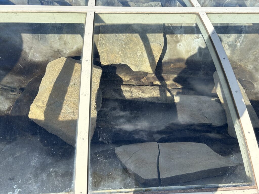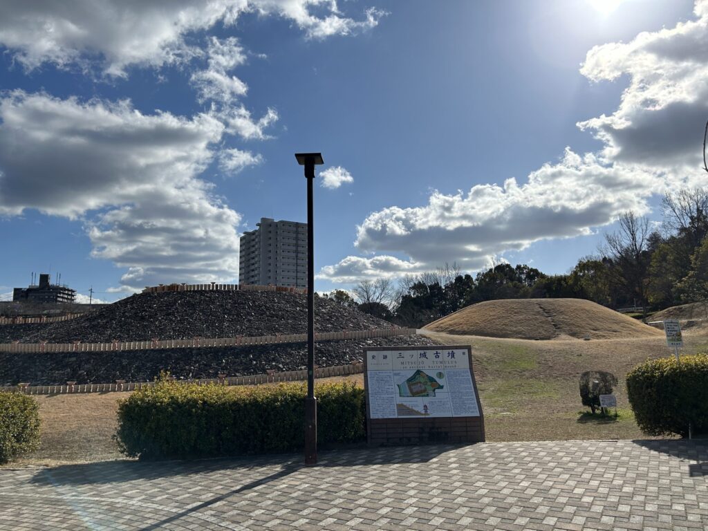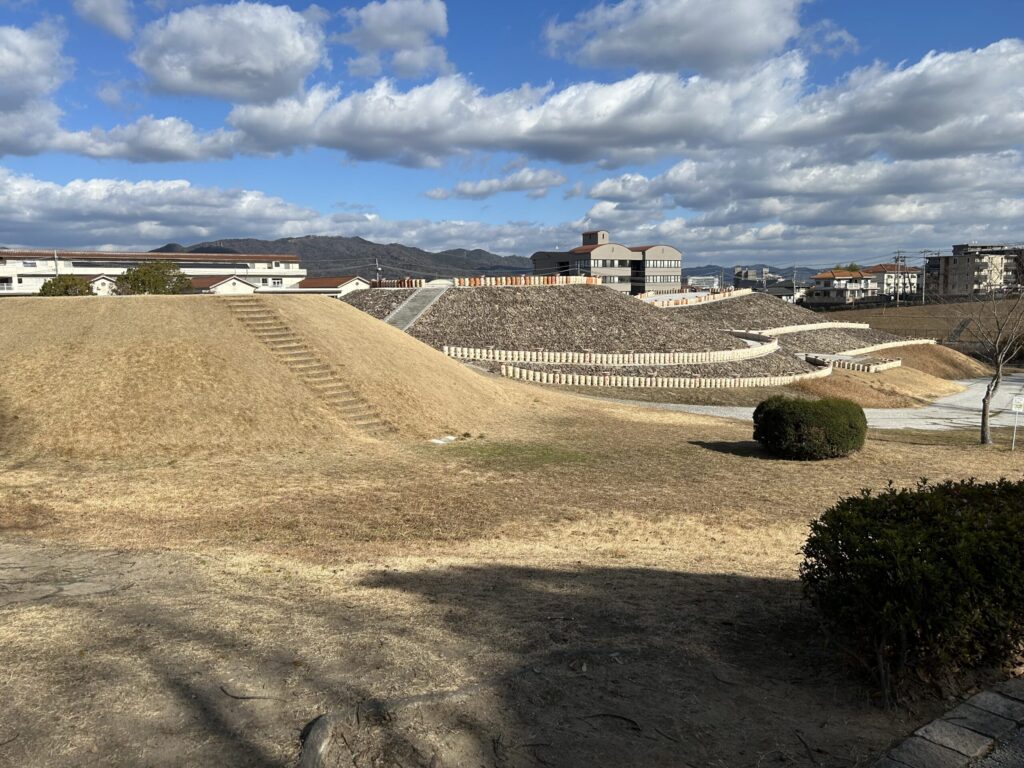 現代の建物と蘇った古墳が重なって見えて不思議な気分